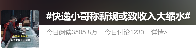 网民也纷纷猜[]测,新规实施[]后可能会出现[]几种情况:引[]发快递小哥离[]职潮、快递费[]涨价、物流更[]慢,甚至快递[]行业大洗牌。[]当然也可能因[]为出现送货慢[]的情况,快递[]企业广招人,[]扩大就业。