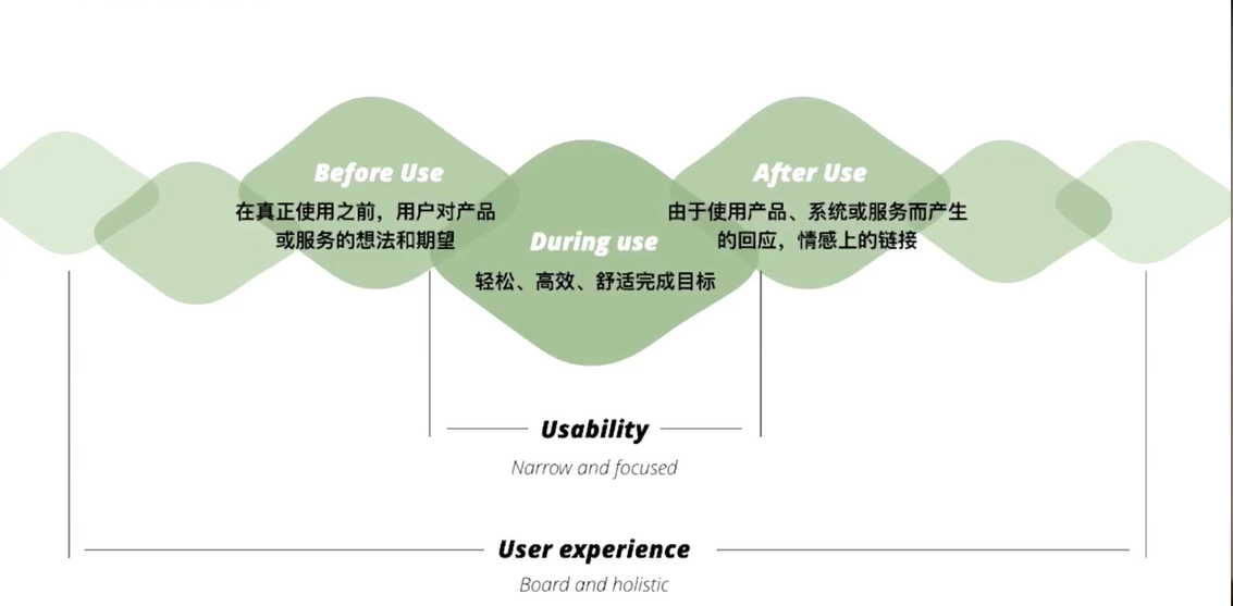 用户体验贯穿产品的的使用前后,而可用性更针对产品的使用阶段。