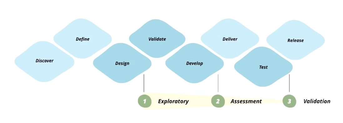 首先我们需要了解,可用性测试不是只需进行一次,理想的设计流程中会在不同阶段进行多次测试,而不同阶段的探索对象和目标也是不一致的。
