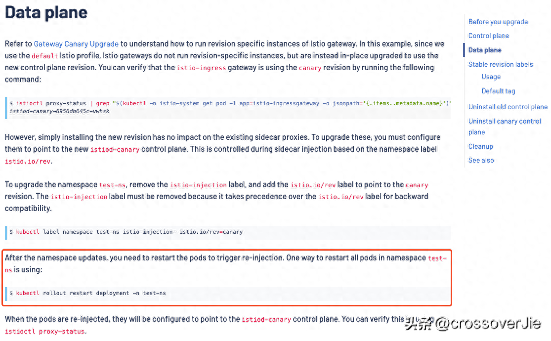 后来我在查看 Istio 的官方升级指南中也是提到了这个命令: