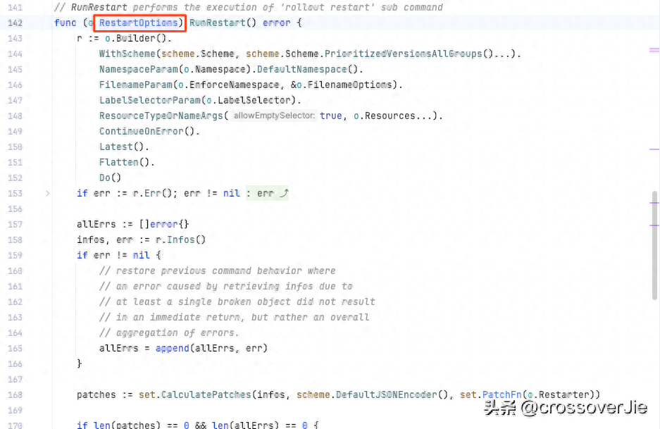 但这个 rollout 命令在 kubernetes 的 client-go 的 SDK 中是没有这个 API 的。