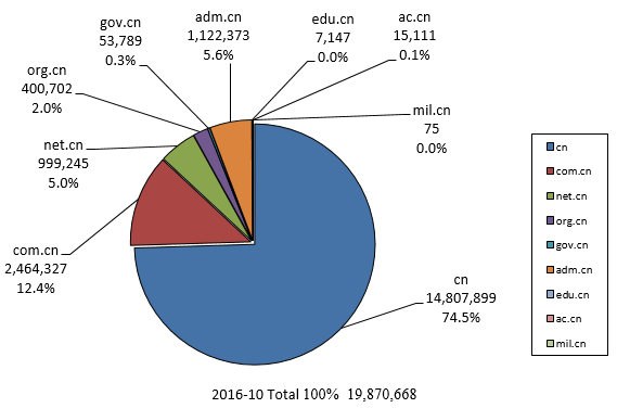 我国国别顶级域名.CN一直都是域名投资人主攻的一大后缀之一,其注册量十分庞大,交易也十分频繁。根据中国互联网络信息中心(CNNIC)公布的最新数据显示,2016年10月,国家顶级域名.CN注册量再创新高,较之上月,净减364,125个,总量达到19,870,668个。