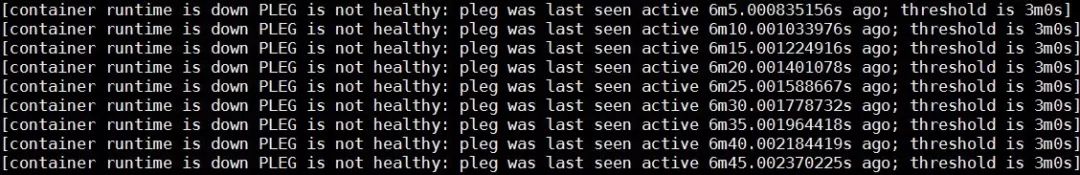 这个报错很清楚的告诉我们,容器 runtime 是不工作的,且 PLEG 是不健康的。这里容器 runtime 指的就是 docker daemon,Kubelet 通过直接操作 docker daemon 来控制容器的生命周期。