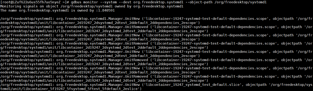 使用下边的命令,观察 org.freedesktop.systemd1 上接受到的所有请求,可以看到,在正常系统里,有大量 Unit 创建删除的消息,但是有问题的系统里,这个 bus 上完全没有任何消息。