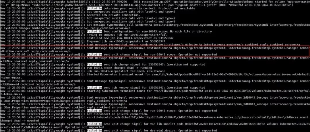 另外,我使用 systemd-analyze 命令,打开了 systemd 的调试日志,发现 systemd 有 Operation not supported 的报错。