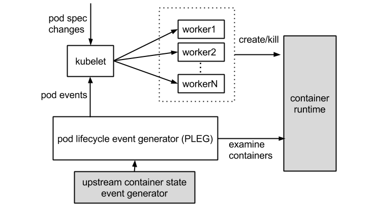 PLEG 是 kubelet 用来检查容器 runtime 的健康检查机制。这件事情本来可以由 kubelet 使用 polling 的方式来做。但是 polling 有其成本上的缺陷,所以 PLEG 应用而生。PLEG 尝试以一种“中断”的形式,来实现对容器 runtime 的健康检查,虽然它实际上同时用了 polling 和“中断”两种机制。