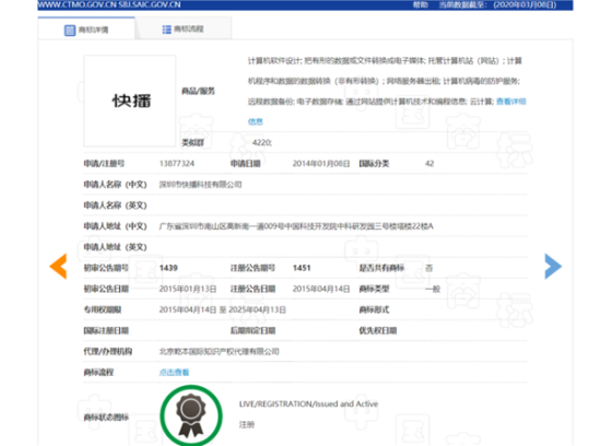 快播公司名下商标合计有234项,主要包括“快播”、“快播云”、“玩吧”、“QVOD"等。