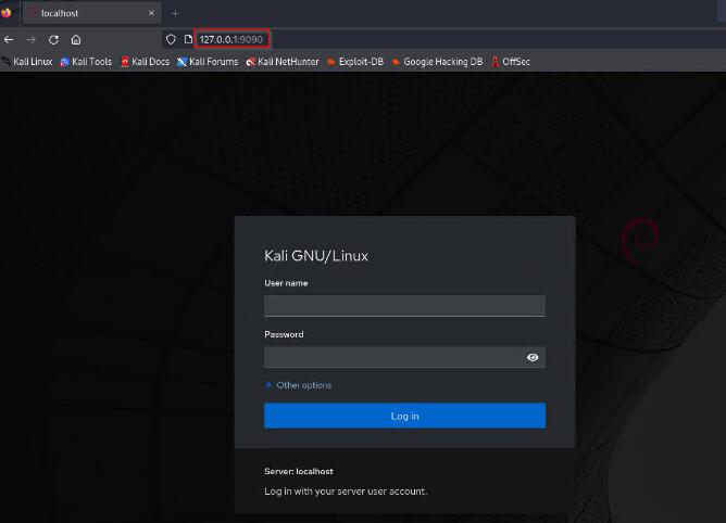 图 5. Cockpit Web 用户界面在本地主机和端口 9090 上打开。