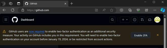 GitHub警告用户如果不在其帐户上启用双因素身份验证(2FA),他们在网站上的功能很快就会受到限制。